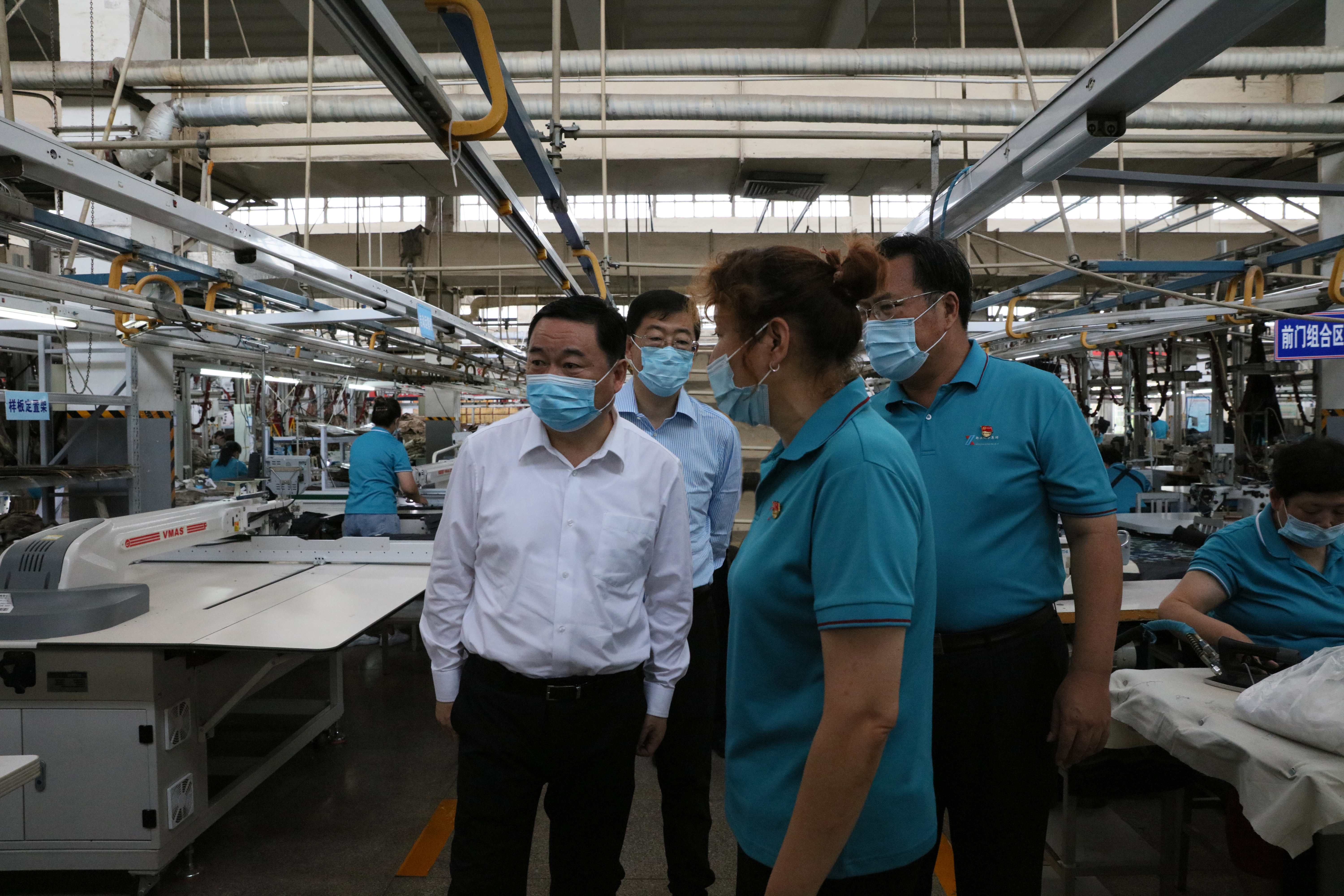 郝鹏还专程赴河北井陉县,到新兴际华集团所属际华三五零二职业装有限公司调研,对企业在新冠肺炎疫情防控急需医用防护服的关键时刻,不计代价、竭尽全力转产扩能保障供应给予充分肯定,向生产一线的干部职工表示亲切慰问和衷心感谢。他强调,要坚持立足主责主业,强化战略引领,深化改革创新,加强企地协同,继续发扬“特别能吃苦、特别能奉献、特别能战斗”的精神,努力实现高质量发展,为提升我国应急物资保障能力贡献更大力量。