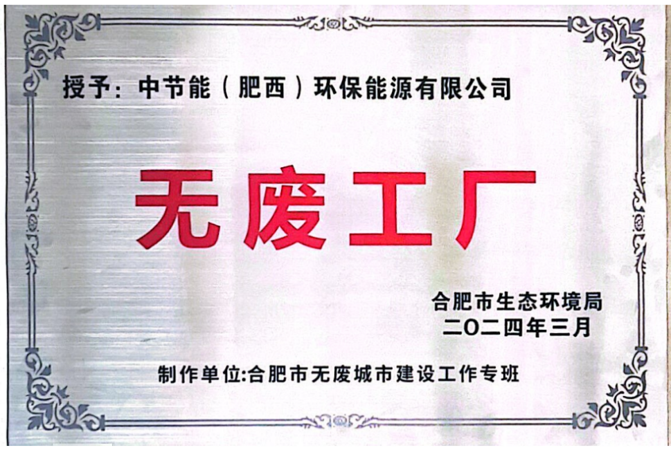 据介绍,2024年,中节能环境肥西公司成功入选合肥市“无废细胞”名单,获评“无废工厂”称号,成为合肥市“无废城市”的标杆示范。