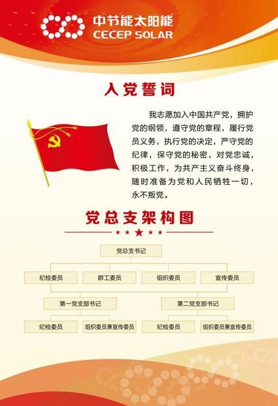 中共中节能太阳能科技(镇江)有限公司党支部于2012年2月27日经中共镇江新区工委组织人事部批准成立,于2015年12月29日升级为党总支。