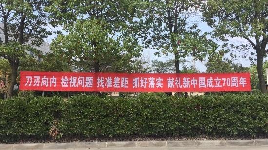 国庆将至,镇江公司为庆祝中华人民共和国成立70周年,在厂区内悬挂“欢度国庆”、“刀刃向内、检视问题、找准差距、抓好落实,献礼新中国成立70周年”等标语横幅,并组织员工和党员代表举行了升国旗仪式。