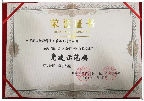 镇江公司荣获镇江新区“2017年度优秀企业党建示范奖”