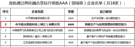 ? ? 企业两化融合的贯标和建设,是响应国家政策性的指导及迎合时代发展潮流的需要,也是企业自身保持可持续性发展的有效助推力及保障。本次入围全国首批18家AAA认证企业,是对镇江公司两化融合工作的充分肯定。