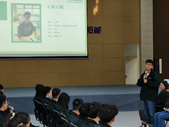 ? ? 交流会开始,每位大学生从个人情况、工作情况、对未来的期待方面做了自我介绍,促进各位员工互相了解,尽快进入角色,融入到镇江公司大家? 庭。