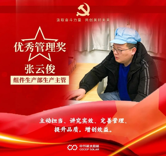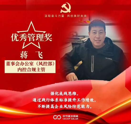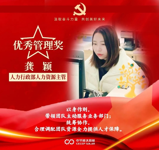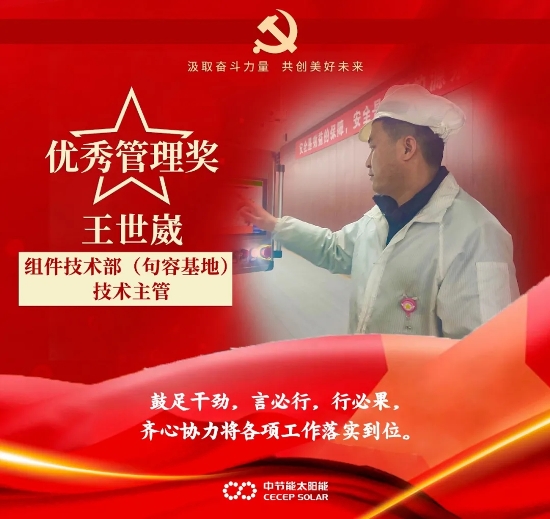 ? ? ?奋斗,是我们党百年成就和经验的鲜明特质,也是我们每一位中节能太阳能镇江人持之以恒的状态和孜孜以求的品质。这一年,全体干部职工履职尽责、积极作为,面对新冠疫情以及持续严峻的市场环境,团结一致、艰苦奋斗,较好地完成了全年目标任务。在此过程中,涌现出一批优秀的个人和集体。典型引领作用愈加凸显,他们奋斗的姿态持续给予我们温暖和力量。