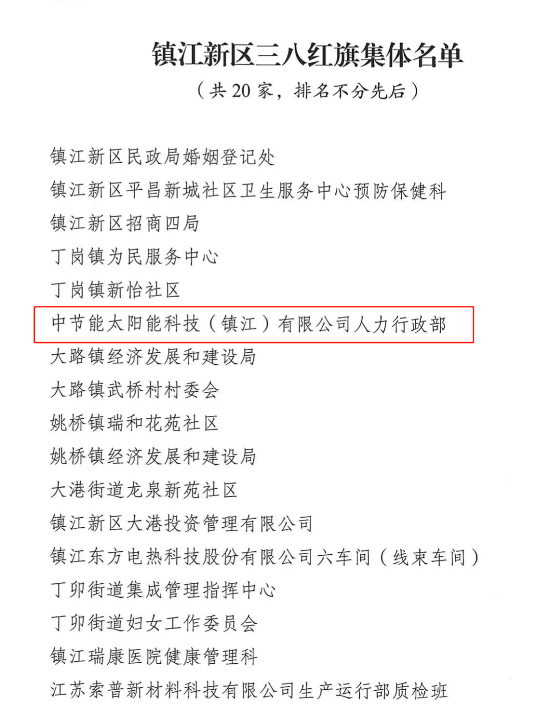 【喜讯连连】红旗映日辉、巾帼展风采——镇江公司人力行政部荣获镇江新区“三八红旗集体”荣誉称号