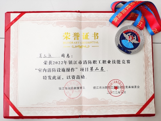 镇江公司葛志恒摘得镇江市消防职工职业技能竞赛银牌,镇江新区唯一一人!