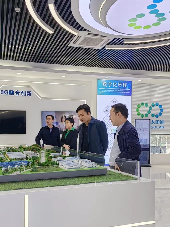 新区法院领导一行首先参观了镇江公司组件M3车间及数字化展厅,了解镇江公司组件智能制造项目的建设与投产情况。
