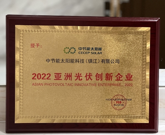 喜讯!中节能太阳能镇江公司荣获“2022亚洲光伏创新企业”