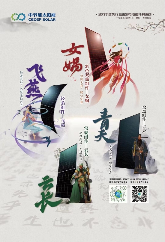 ? ? ? ?2022年,地面电站、工商业分布式、户用分布式基本上是三分天下的局面。随着分布式应用的不断增加,产品的差异化需求日益凸显。会上,黄国平重点介绍了中节能太阳能镇江公司针对分布式市场推出的系列差异化组件:全黑组件“青天”,实现与屋顶的完美融合,在欧洲市场受到了客户的广泛好评;轻柔组件“飞燕”,针对载荷能力不足的屋顶安装光伏的需求,为客户提供了中节能轻柔组件产品解决方案;彩色双玻组件“女娲”,可以实现多种颜色的定制化,可谓五彩斑斓。