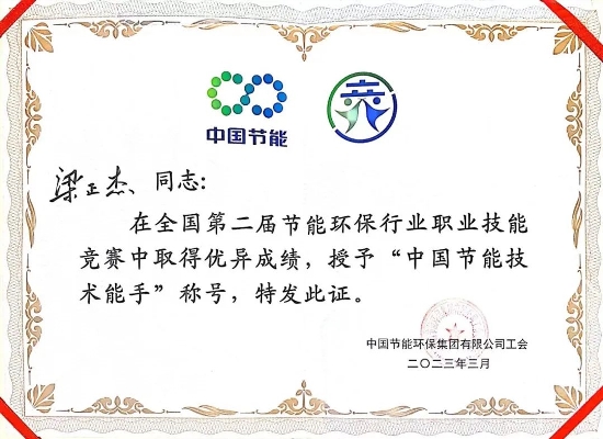 ? ? 梁正杰,2014年于江苏科技大学毕业后进入中节能太阳能镇江公司工程部工作,目前担任气化运维工程师一职,工作中他不断加强自身各项技能提升,先后获得过国家卫生健康委办公厅全国总工会办公厅颁发的职业病防治宣传海报组“图文类优秀奖”,江苏省卫生健康委、省总工会颁发的“江苏省职业健康达人”,镇江公司2022年度共产党员标兵等,此次参赛获得“中国节能技术能手”荣誉称号也是对他工作能力的充分认可。