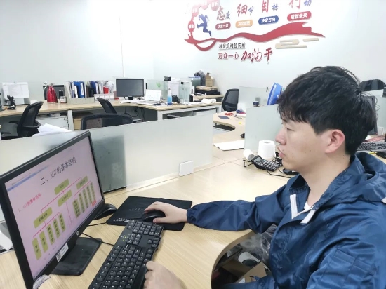 ? ? 在AGV小车研发设计阶段,他负责电气线路结构设计,使其控制电路结构精简、布线紧凑、占用空间小,便于电气检修,并集成5G模块,使AGV导航以及数据传输更具时效性,为生产物料管理精准化、精细化提供极大帮助。