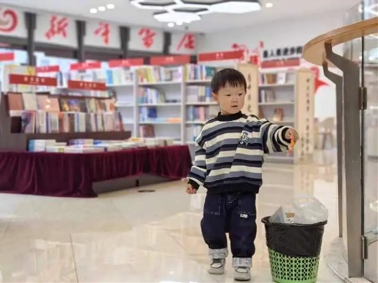为地球发声,我来接力。为了书店的整洁,小宝捡起了垃圾丢到垃圾桶里啦。