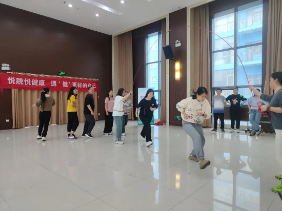 4月28日下午,镇江公司报告厅内人头攒动,齐聚了来自各部门的参赛人员100多人,开展了一场激烈又欢快的跳绳比赛,比赛分为团队赛、女子组个人赛和男子组个人赛,伴随着裁判员的一声发令,参赛职工手持跳绳,身轻如燕,一跃而过。镇江公司通过这次跳绳比赛,深入引导职工自觉践行健康生活方式,做自己健康的第一责任人,“遇‘健’更好的自己”。