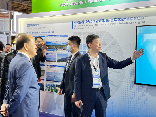 展会期间,澳门特首及特区政府司长、特派员、中联办领导一行,参观澳门国际科技创新博览会中国节能展位,在展台现场与太阳能公司党委副书记曹子君亲切交流,共同探讨清洁能源解决方案,赋能澳门绿色低碳产业发展。