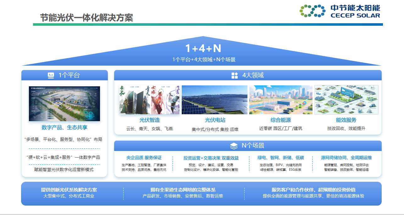 本着合作共赢,协同创新的理念,我们集合光伏产品、数字产品、光伏生态深入拓展户用家庭、工商业、园区、农业、智慧能源等多元化应用场景,构建了数字化、全渠道的生态网络。目前公司建成以产品研发、生产、销售、服务和项目开发、设计、施工、运维为一体的完整体系,为用户提供一站式的清洁能源解决方案。