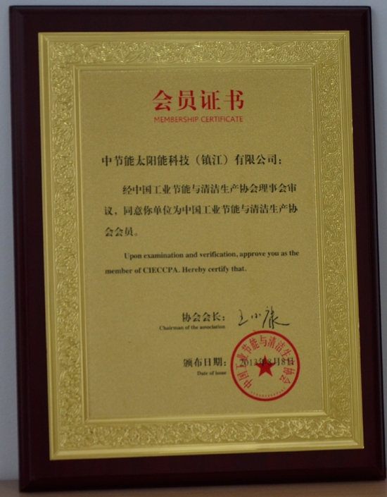 On August 8, 2013, Zhenjiang company became a member of China industrial energy conservation and cleaner production association