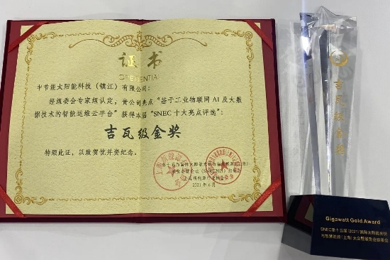 By actively promoting the implementation of the strategic goal of “digital CECEP”, striving to build a benchmark factory of digital cloud platform for intelligent manufacturing of high-efficiency photovoltaic cells and modules, and promoting the construction of the “energy saving cloud ecosystem”, CECEP Solar Energy Technology (Zhenjiang) Co., Ltd. provided customers with better intelligent manufacturing solutions that combine “hardware + software + cloud + integration + service” together. In the current “SNEC Top Ten Highlights Selection”, CECEP Solar Energy Technology (Zhenjiang) Co., Ltd. won the “Gigawatt Gold Award” for its “intelligent operation and maintenance cloud platform based on industrial Internet AI and big data technology”.