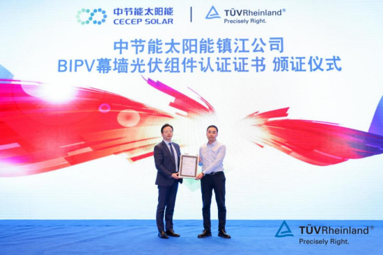 TüV Rheinland Awards BIPV PV Curtain Wall Module Certification to CECEP SOLAR Energy Technology (Zhenjiang) Co., Ltd.