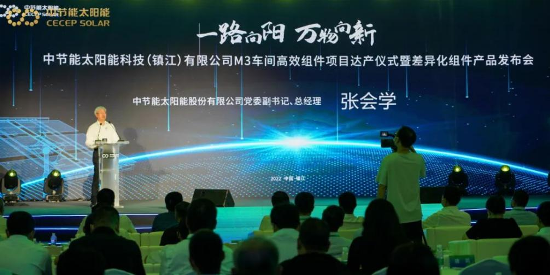 Pursuing Continuous Development and Moving Towards a Better Future On September 23, the Target Output Reaching Ceremony and Differentiated Module Release Conference of the M3 Workshop of the CECEP SOLAR Energy Technology (Zhenjiang) Co., Ltd. (hereinafter referred to as CECEP SOLAR Zhenjiang ) was successfully held. The guests gathered together to witness the glorious moment in the way of "offline + online live broadcast" and contribute to the energy-saving power to promote the high-quality development of the PV industry under the new situation. Cao Huabin, Standing Committee Member of the Party Committee and Vice General Manager of China Energy Conservation and Environmental Protection Group, Chairman of the Board of CECEP SOLAR Energy Co., Ltd., Lu Yuezhong, Vice Chairman of Zhenjiang CPPCC and Secretary of the Party Working Committee of Zhenjiang New Area, Zhang Huixue, Deputy Secretary of the Party Committee and General Manager of CECEP SOLAR Energy Co., Ltd., Li Jingnan, Secretary of the Party General Branch and Chairman of the Board of CECEP SOLAR Energy Technology (Zhenjiang) Co., Ltd., and relevant leaders attended the event.