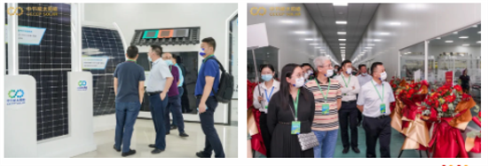 After the ceremony, the guests visited the exhibition hall of "Party Building Leading, Digital Interconnection" and the M3 high-efficiency module workshop of CECEP SOLAR Zhenjiang.